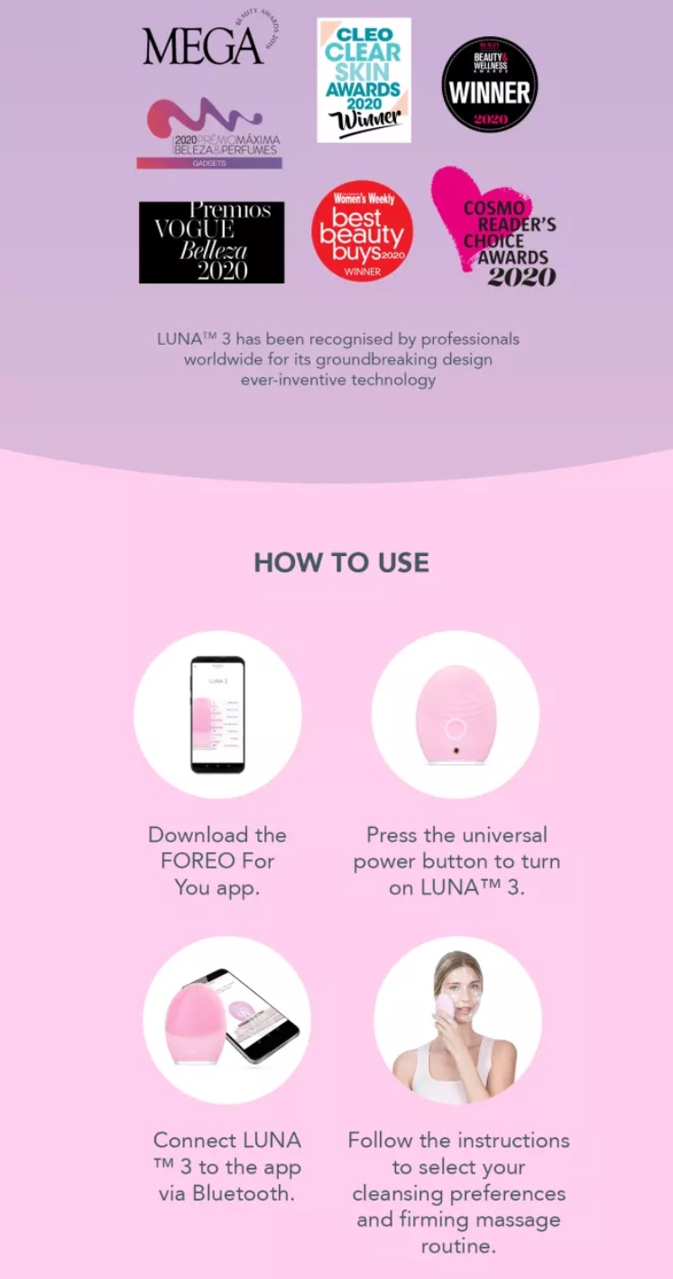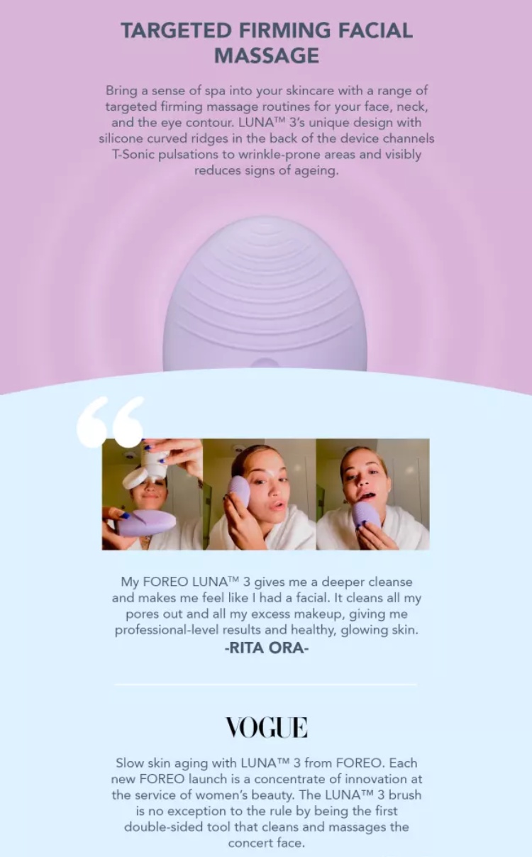 FOREO LUNA 3 Ultra-Hygienic Facial Cleansing Brush Anti Aging Face Massager - Product Information
